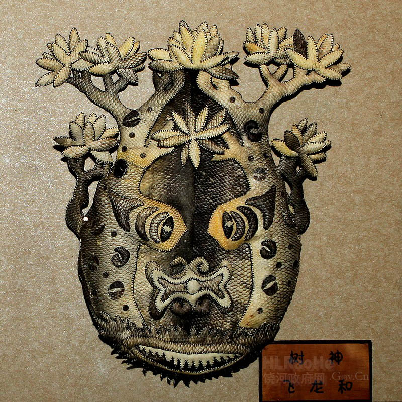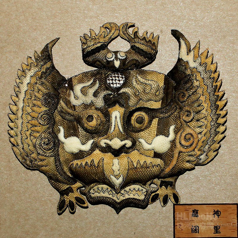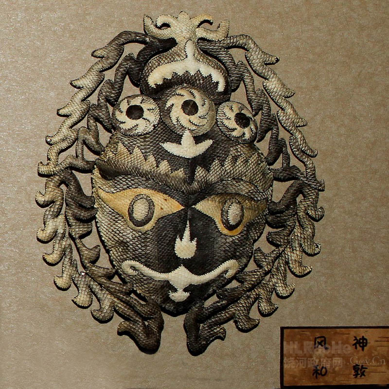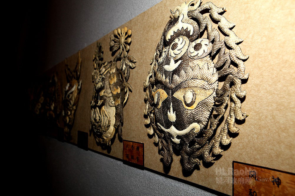 赫哲鱼皮图腾神谱采用拼贴、雕镂、缝制等工艺,经纯手工制作而成。本品选用东北特有大马哈鱼皮经手工技师精心制作而成。鱼皮有一种自然的美,具有天然的鱼鳞花纹,多种多样,凹凸不平,又浑然天成,收藏几十年不会变质,是艺术收藏的珍品。 |